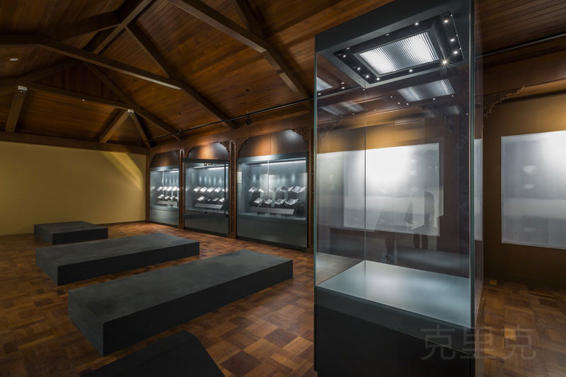 由于貝聿銘團隊對克里克的高度認同與盛情邀請,我們不遠千里、飛往文萊,與建筑設計師精誠合作,深入考察當地沿海臨水的地理環境、感知炎熱潮濕的熱帶雨林氣候特征、洞悉伊斯蘭文化精神、了解整體空間布局;再結合克里克自身設計特色、技術實力和工藝品質;駕輕就熟面對跨國、跨文化合作,為文萊皇家伊斯蘭博物館量身定制出一整套符合當地文化美學的展柜解決方案。
