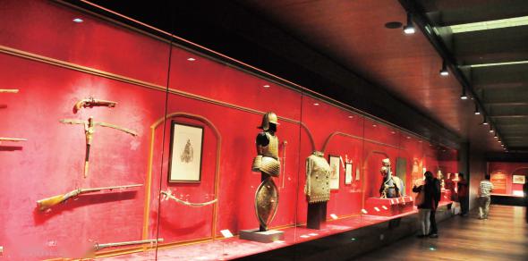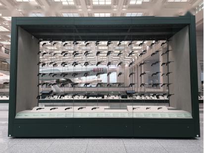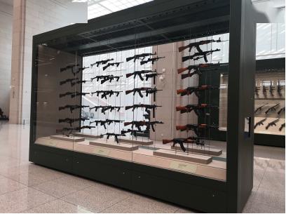 軍博的特色是收藏了各種各樣的武器,展示武器需要使用照片里的雙向獨立展柜,為了保證展示效果,這種展柜的玻璃版面很大,在使用抗彎低反玻璃后,原來玻璃彎曲影響氣密性的問題得到了解決,讓展覽的維護變的更輕松。