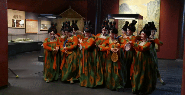 興奮地圍看彩繪女俑、盡情地婀娜共舞……走進(jìn)河南博物院的“唐宮小姐姐”,依然俏皮嬌憨,她們穿行于彩陶女俑、武則天金簡(jiǎn)等文物之間,仿佛在歷史與現(xiàn)實(shí)中穿梭,默默無(wú)語(yǔ)的文物與靈動(dòng)活潑的少女相映成趣。《唐宮夜宴》編導(dǎo)陳琳說(shuō),河南博物院院藏樂(lè)舞俑正是舞蹈《唐宮夜宴》的創(chuàng)意來(lái)源之一。而這些“唐宮小姐姐”圍著跳舞的陳展文物的展柜,均來(lái)自四川克里克。