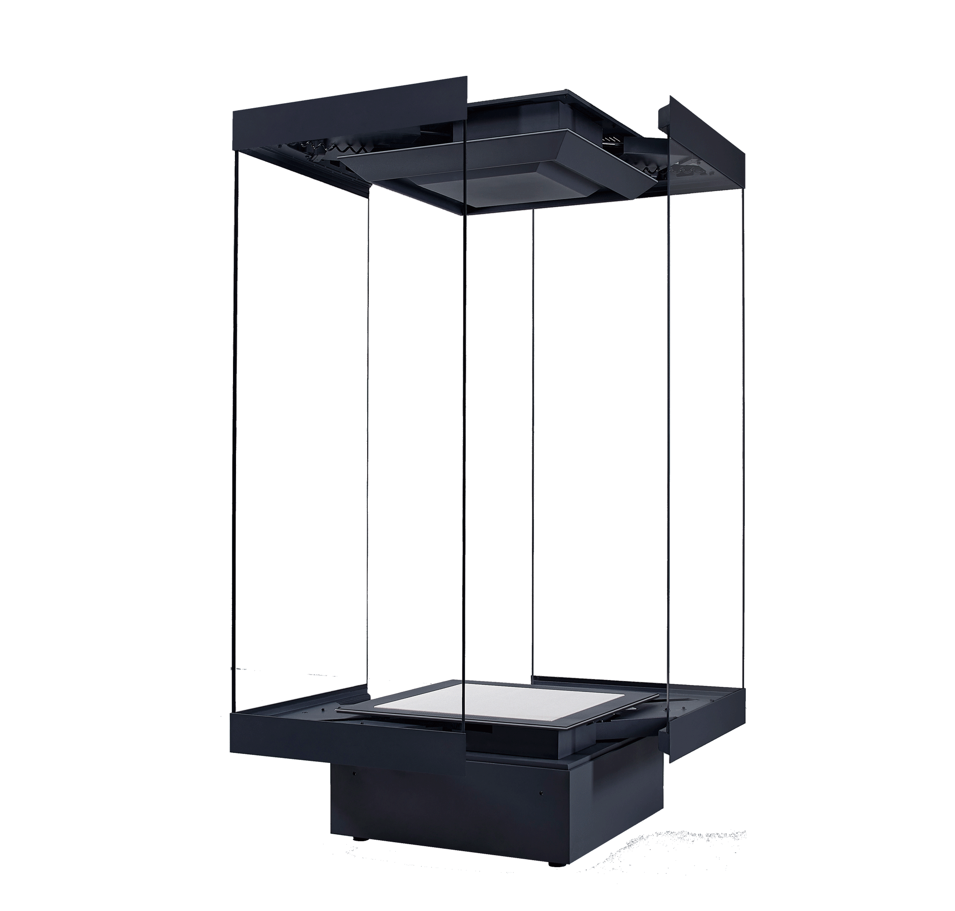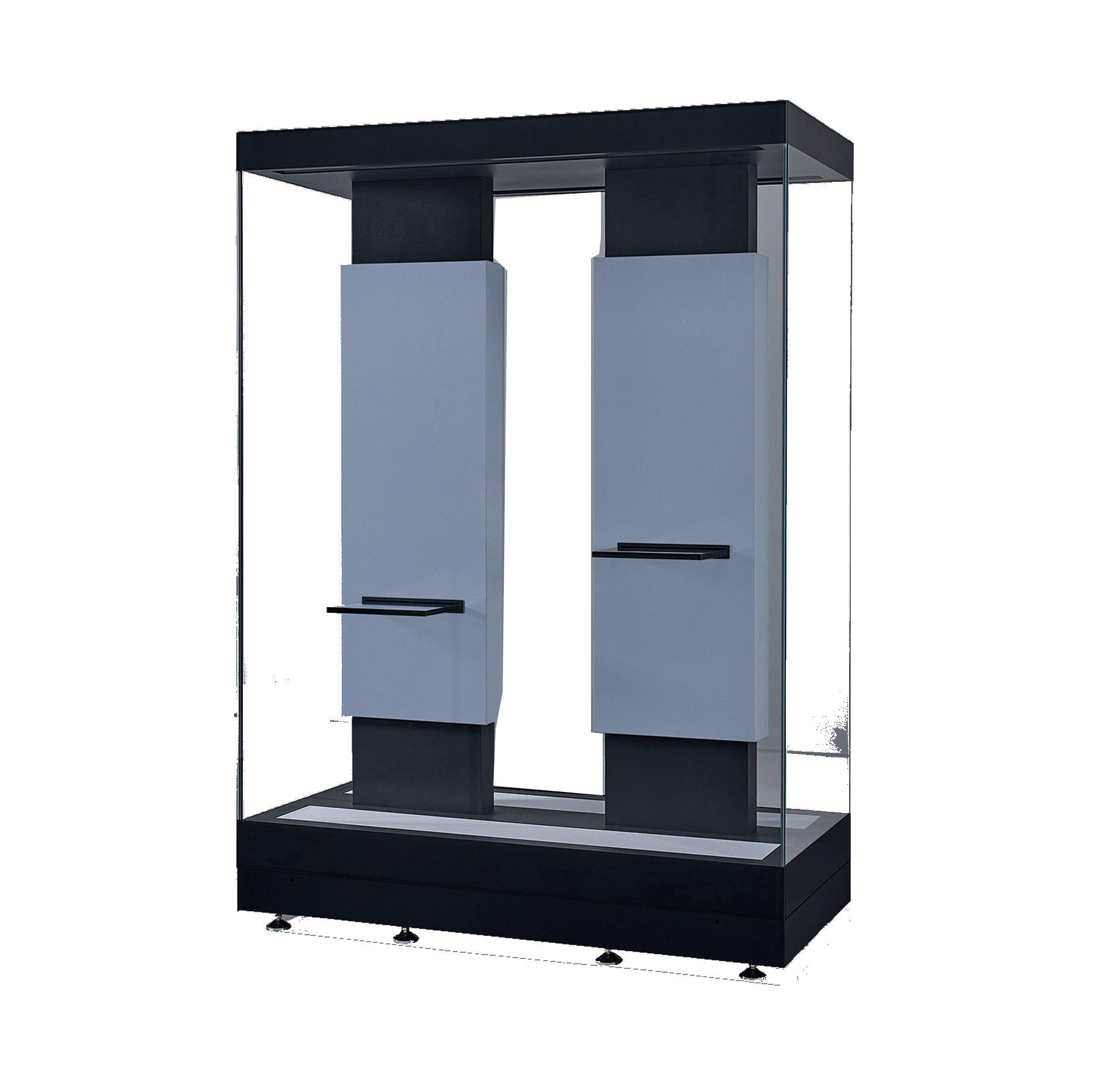 描述 獨立柜是由四面或者五面玻璃柜固定在一個底座上的柜體樣式; 基座: 鋼板、木材、石材 玻璃 普通浮法玻璃、超白玻璃、低反射玻璃 表面處理 標配:粉末噴涂 開啟方式 手動、半自動、全自動、上翻、升降、側滑、抽屜式
